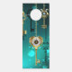 Or, clés antiques avec engrenages et cadrans accrochés sur chaînes dorées sur arrière - plan vert lumineux.