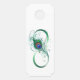 Le symbole de l'infinity with a bright, green, artistic peacock feather on a white background. Tattoo style.