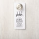 Ces affichettes de porte d'hôtel mariages de calligraphie sont parfaits pour un mariage moderne. Le design est caractérisé par une typographie élégante mais rustique pour un look simple et minimal. Fournissez ces étiquettes de porte aux clients de l'hôtel afin qu'ils puissent se reposer en abondance pour se remettre de votre mariage.