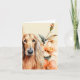 A beautiful watercolor portrait of an Afghan Hound dog sitting against lovely peach colored lilies flowers creating a beautiful little set of note cards ready for your message.