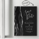 Cette élégante carte magnétique de date moderne dispose d'une bordure d'aquarelle noire taillée avec parties scintillant en faux argent. Le texte personnalisable est gris argenté clair sur un arrière - plan gris fusain foncé.
