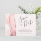 Cette élégante carte de datation moderne comporte une bordure d'aquarelle rose vif et ornée d'une parties scintillant en faux or. Le texte personnalisable combine écriture manuscrite, copperplate et polices italiques en gris fusain sur un arrière - plan blanc. L'envers est assorti d'un design d'agate en blush et or.
