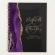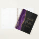 Cet élégant wedding planner moderne présente une aquarelle violette décorée de parties scintillant en faux or. Customisez facilement le texte de couleur or sur un arrière - plan non noir, avec les noms de la mariée et du marié en calligraphie manuscrite sur une grande carte grise. Ajoutez le titre et la date du mariage ci-dessous en italique. La couverture arrière est assortie d'un motif d'agate violet et or.