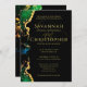 Une faire-part de mariage sophistiquée lavée à l'encre avec des détails luxueux vert émeraude, bleu, noir et or. Un faire-part de mariage d'art abstrait aux tons bijoux sophistiqué. Cet élégant invitation de mariage dispose d'un lavage artistique d'encres en vert, bleu, noir et or. Ajoutez facilement les détails de votre mariage au modèle à l'aide de l'outil de personnalisation de Zazzle. Veuillez nous contacter si vous avez besoin d'aide via Zazzle Conversation. Agate Green Black Gold Ethereal Faire-part de mariage. Consultez notre collection pour plus d'articles mariages émeraude pour votre journée spéciale.