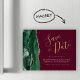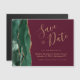 Cette élégante sauvegarde la carte magnétique date dispose d'une bordure d'aquarelle vert émeraude bordée de parties scintillant en faux or. Le texte personnalisable combine écriture manuscrite couleur or, copperplate et polices italiques sur un arrière - plan bordeaux.