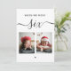 Mariage de script noir et blanc Carte Numéro de tableau "Quand nous étions âge" avec photo du marié et de la mariée.
