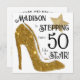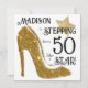 Cette invitation de fête d'anniversaire de parties scintillant d'or peut être personnalisée avec le nom, l'âge, la date, l'heure, l'endroit et les détails afin que votre fête sera un grand succès! Glamour et audacieux avec une chaussure à talon d'or et une étoile d'or pour annoncer des plans d'anniversaire spéciaux.