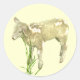 Ces autocollants présentent un doux petit agneau de seulement trois semaines mangeant de l'herbe contre un arrière - plan jaune.