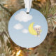 Une conception douce de bébé avec un petit agneau tenant un ours de jouet et se reposant sur un croissant de lune jaune a suspendu des nuages blancs. Articles coordonnés disponibles. Personnaliser comme désirée.