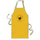 Tablier long de style "ferme" avec un script personnalisé et une illustration de poulet sur un arrière - plan jaune vif.