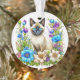 Ornement de Noël. Beau chat siamois aux yeux bleus dans une parcelle de fleurs bleues et violettes est de l'art dans un style aquarelle.