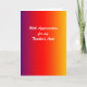 Cette carte de voeux colorée fait partie de notre collection "arc-en-ciel vif", qui comprend également des articles-cadeaux, tels que des couvertures de bonbons, des coques ipad, des cabines téléphoniques, de petites boîtes à bijoux, des porte - clés, des sacs pour ordinateur portable, des planificateurs de jour et d'autres cadeaux. Vous pouvez customiser la carte et les produits correspondants, pour les rendre encore plus spéciaux. Une super carte pour montrer votre appréciation à votre aide pédagogique! Tous droits réservés © 2013 Alan & Marcia Socolik