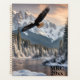 Un majestueux aigle chauve s'envole au-dessus d'une rivière dans le haut pays, alors que la neige recouvre la terre et les arbres. Parfait pour tous ceux qui aiment la nature et le plein air.