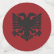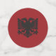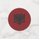 Confetti en cercle rouge avec dessin d'aigle albanais noir.