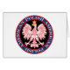 Ce design rond coloré présente l'aigle polonais avec une couronne d'or, l'emblème national de la Pologne, entouré par les mots Polonais Américain. Soyez fiers de votre héritage des États-Unis d'Amérique et de la Pologne.