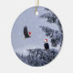 Aigles chauves avec chapeaux de Père Noël dans une forêt avec de la neige sur un ornement de Noël en céramique. Parfait pour les amoureux de la nature !