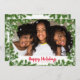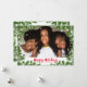 Joyeux carte photo de vacances avec aiguilles de pin vert et bordure de flocon blanc autour de votre photo de famille préférée. Créé par © Lesruba Designs.