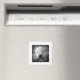 Photo en noir et blanc d'un chiot de 10 jours des Grandes Pyrénées sur un aimant carré.