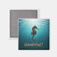 Aimant "Wanderlust". Un design fantaisiste avec un hippocampe nageant dans l'océan, parfait pour tout voyageur ou rêveur.