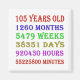 105th birthday counting down the years, days, months, hours, and minutes. A present to give pause for thought! Leap years have been taken into account!