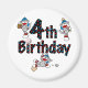 Trois petits singes chaussettes en casquettes de baseball bleu lancent, glissent, et en chauve-souris sur notre Sock Monkey Baseball 4th Birthday design avec des singes chaussettes et texte cool qui dit "4th Brithday".