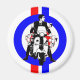 Coureur de scooter noir et blanc dessiné à la main des années 60 sur une cible et rayures rouge et bleu mod. Grand cadeau pour n'importe quel scooter garçon ou fille