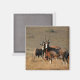 Peinture d'un troupeau de blesbok africains dans un champ, regardant de façon ouverte le spectateur avec leurs visages blancs sans expression sur un aimant de réfrigérateur carré.
