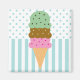 Ce design comprend un cône de crème glacée à triple scoop (fraise, puce chocolatée blanche au chocolat et puce chocolat à la menthe) sur un point de polka bleu clair et un arrière - plan rayé. Conçu pour accompagner nos produits "Ice Cream Cone" dans la section papeterie et accessoires de notre galerie.