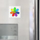 Fleur joyeuse avec pétales arc-en-ciel sur un arrière - plan coloré.