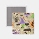 aimant à motif Halloween vintage qui comprend un couteau, une sorcière et des chauves-souris pour compléter votre collection de magnets/souvenirs d'Halloween.