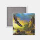 A beautiful rocky mountain landscape with a bientôt eagle with wings outstretched flying gracefully above this scenic rustic landscape. A patriotic