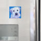 Cet aimant est doté d'un terrier à blé doux, dans les tons blanc, bleu, violet et rose. Ses yeux sont un brun riche et profond. Comment pouvez-vous résister à ce visage ? J'ai créé le portrait original en aquarelle, encre et crayon couleur sur papier aquarelle.