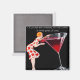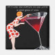 Aimant avec l'image vintage d'une dame avec un grand verre de vin et les mots, bien sûr la taille importe, personne ne veut un petit verre de vin.