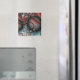 Boules bleues marron à motif unique avec effet 3D. Un imaginaire moderne abstrait et coloré d'art fractal. Conception pour votre aimant carré inhabituel et plus encore.