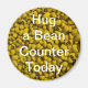 Bouton pour les comptables dit "Hug a Bean Counter Today." en lettres blanches sur un arrière - plan de haricots jaunes. Qui dit que les comptables n'ont pas le sens de l'humour ? Un cadeau mignon pour votre broche à chiffres préférée.