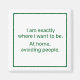 Cet aimant est une vibe. Utilisez-le pour déclarer votre préférence pour la solitude pacifique. Le texte dit : "Je suis exactement là où je veux être. À la maison, en évitant les gens."
