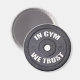 Gym Addict Funny disque gris foncé image de poids avec le texte "dans Gym We Trust" cadeau parfait pour ceux qui aiment l'entraînement, la remise en forme et la musculation, ou juste comme passer du temps dans gymnase