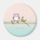 A moderne girly and cute design of cartoon owl on pink and blue background with lace.