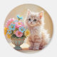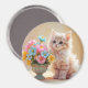 Aimant Adorable Kitty avec Bouquet de fleurs