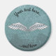 Image large ailes ouvertes bleu-gris. Arrière - plan bleu grognon. Texte personnalisé en haut et en bas.