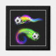 Cet aimant carré est présenté avec une impression artistique d'un ballon de football enflammé.