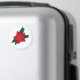Un aimant rond avec des poinsettia de Noël orange rouge, avec des feuilles vert foncé et un contour noir