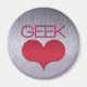 Aimant Geek simple mais cool (coeur) avec le mot geek et un coeur damassé. Faites connaître aux gens votre amour du geek avec cet aimant amusant ! Customisez cette conception en enlevant ou en remplaçant l'image arrière - plan métallique élégante.