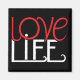 Design de texte graphique simple et simple en rouge, blanc et noir, avec des mots positifs d'encouragement, nous rappelant à tous d'aimer la vie ! Aussi disponible sous forme de belle carte assortie, timbre, autocollant, porte - clé, t-shirts, tablier, affiche.