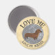 En raison de la construction longue et étroite, le Dachshund est parfois appelé un chien plus blanc, un hot dog ou un chien de saucisse. Annoncez votre passion pour ce petit chien : "Aimez-moi - Aimez mon Wiener"!
