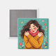 Un mignon aimant fantaisiste à l'art populaire avec une fille dans un chandail chaleureux et douillet se donnant un câlin. Rappelez-vous que l'amour de soi est important avec cette jolie illustration d'amour.
