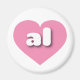 Cet aimant contient un coeur rose cool et calme contenant les lettres coques audacieuses, blanches, arrondies et inférieures, une abréviation ludique pour Alabama, l'état jaune. Marche !
