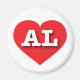 Cet aimant est doté d'un coeur rouge vif contenant des lettres coques en haut, blanches et audacieuses AL, l'abréviation officielle de Alabama, l'état jaune. Marée roulante !