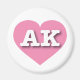Cet aimant est composé d'un coeur rose contenant les lettres coques AK, en haut et en blanc, l'abréviation officielle de Alaska, la dernière frontière.
