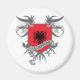 Bouclier albanais sur un aigle grinqué. Des ailes étalées et conçues avec des bannières.
